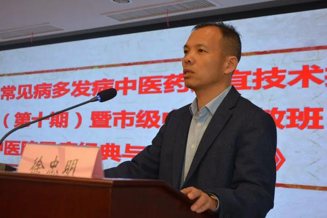 徐忠明在开班仪式上致辞。他说,萧山中医院作为杭州市四家国家级基层常见病多发病中医药适宜技术推广基地之一,承担着萧山区全区的适宜技术推广工作。三年来,萧山中医院紧跟时代潮流,把握住中医药政策机遇,通过一系列项目的实施,发挥了浙派中医在基层常见病种的诊疗优势,让实用有效的传统中医药技术走向各基层社区卫生服务中心,提升了我区基层医务人员的中医药诊治能力。