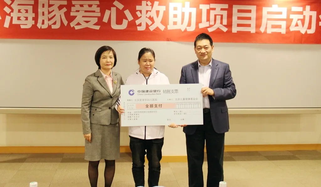首位受助的贫困患儿家长来到了启动仪式现场,这位来自内蒙古的妈妈,为孩子看病耗尽了本就不多的积蓄,不得不借债前来北京治病。「小海豚爱心救助项目」的救助为这个贫困的家庭解决了燃眉之急。