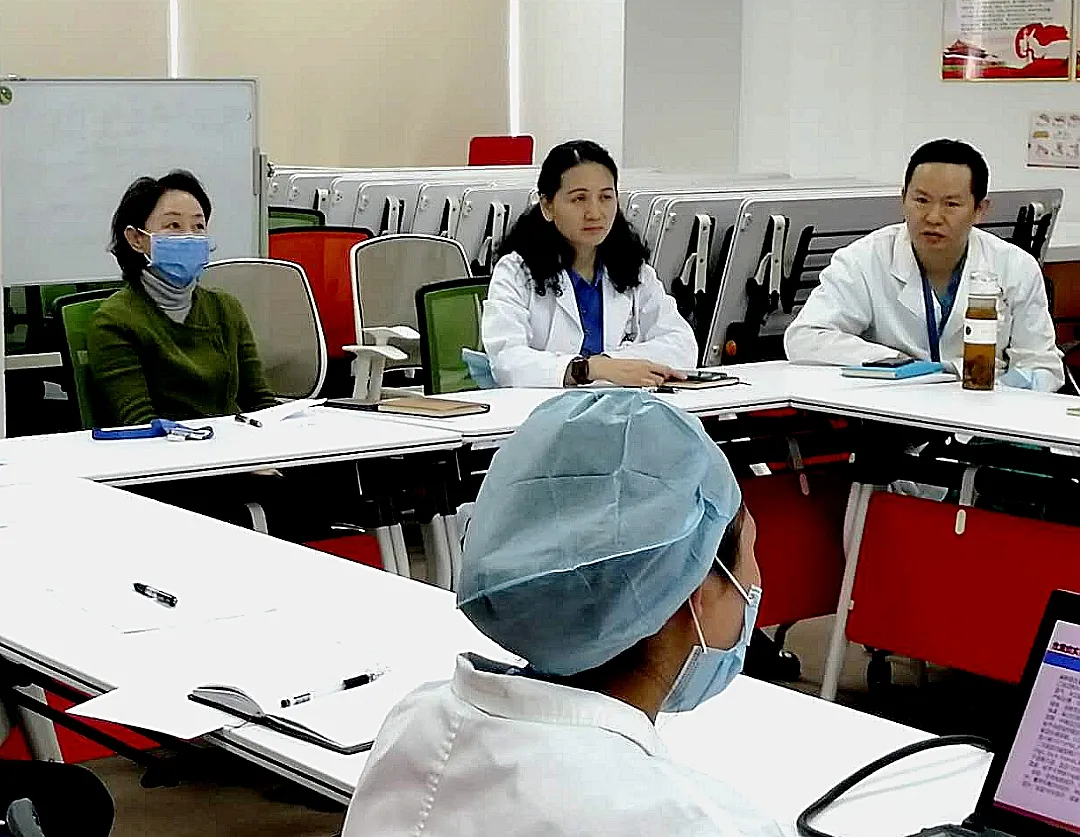 参加评审的医生和护士们一一上台答辩。专家组针对他们汇报中的问题一一进行了细致入微的指导。