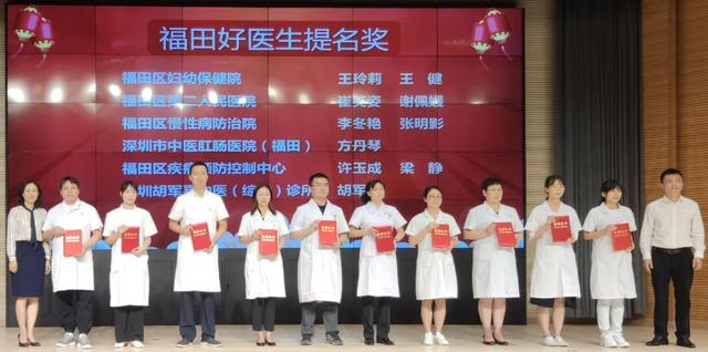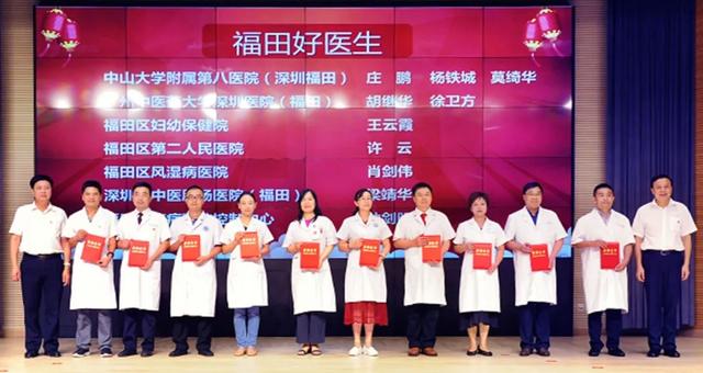 8 月 18 日,福田区 2020 年中国医师节表彰大会在广州中医药大学深圳医院盛大举行,向奋斗在抗疫战线和医疗卫生事业战线的医者致敬。福田区一批「深圳好医生」、「深圳市优秀医师」、「深圳市优秀医技人员」、「福田好医生」、「福田好医生提名奖」受表彰。深圳市卫健委主任罗乐宣、福田区委书记郑红波、区长黄伟、副区长孟漫出席大会并向获奖医生颁发证书。
