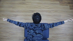 双上肢伸直,大拇指朝上。