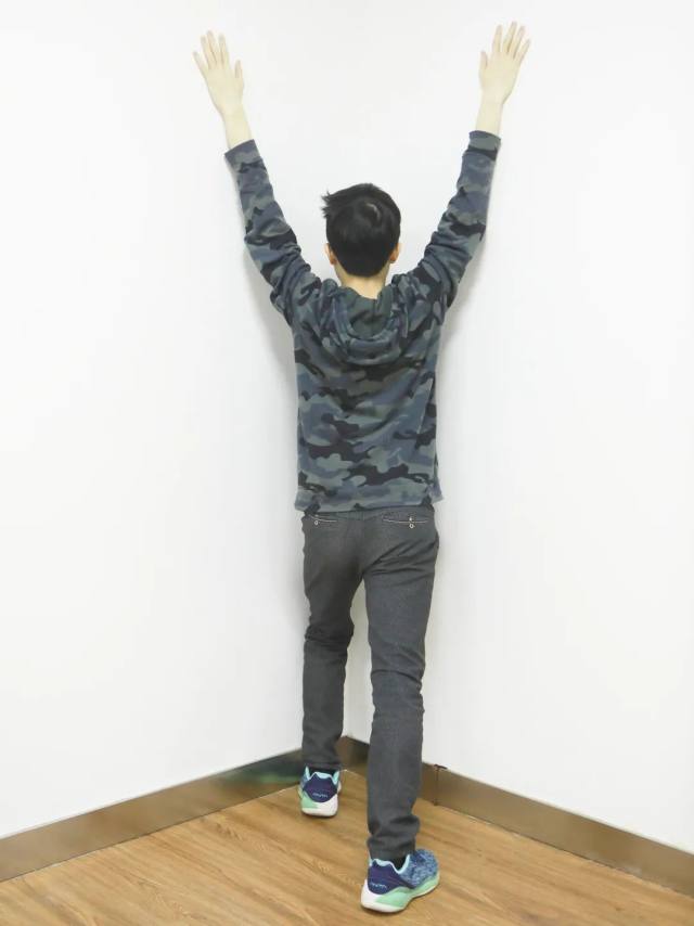 手臂靠墙呈反T或V字形。