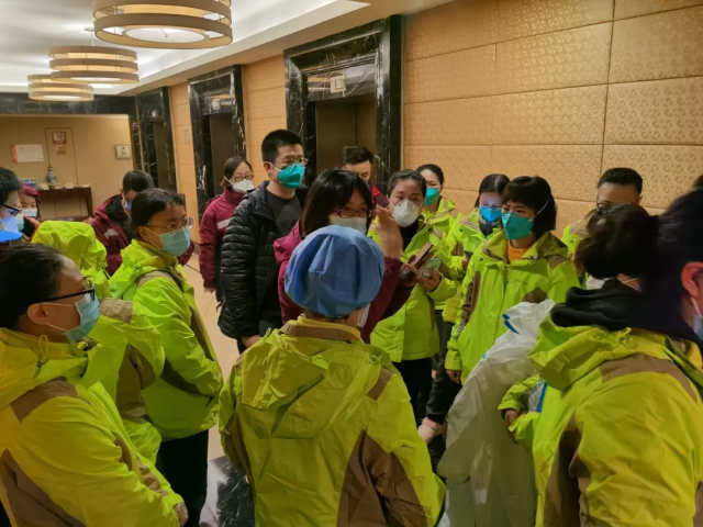 14 日接受任务后,为了确保 15 日收治病人,队员们紧急制定《四川省医疗队住宿区感染防控流程》,对下榻酒店严格按照清洁区、污染区和半污染区分区管控,并对病区防控动线和流程进行预先设置,一直工作到第二天凌晨 2 点。稍事休息,就投入到进入 病区的准备: