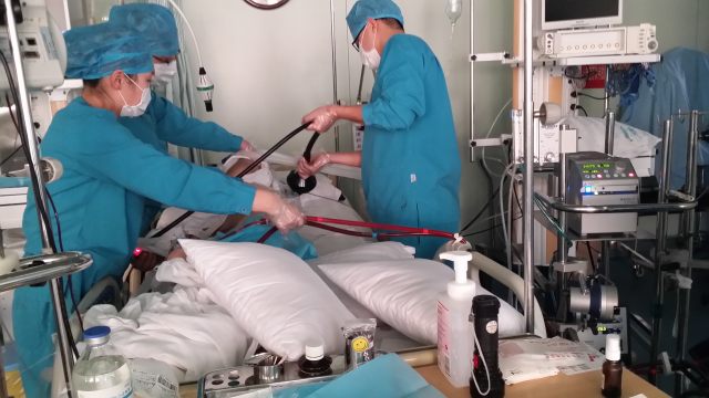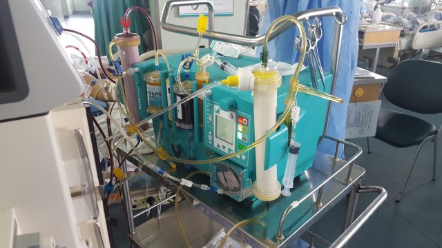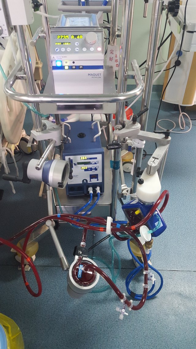 体外膜肺氧合技术(ECMO)是体外循环 (CPB) 技术范围的扩大和延伸,ECMO 可对需外来辅助呼吸和 (或) 循环功能不全的重危病人进行有效的呼吸循环支持。科室开展的 ECMO 技术主要针对 H7N9、H1N1 等流感病毒导致的重度肺炎引起的顽固性低氧血症的治疗,目前科室已成为继省胸科医院之后省内第 2 家独立依靠自己力量开展此技术的科室,截止目前,已开展 4 例 ECMO 技术,填补了潍坊市的空白,大大提高了重度 ARDS 病人的抢救成功率。