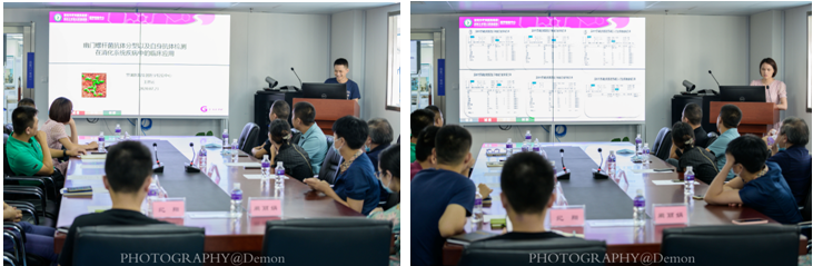 听完两位消化科主任的生动讲解后,医学检验实验室的王恩运、刘丽亚、覃俊龙和纪翔四位老师分别介绍了幽门螺杆菌抗体分型以及自身抗体检测在消化系统疾病中的临床应用、自动粪便处理分析系统在消化内科的临床应用、血清胃功能检测与肝癌早诊三联检结果解读及临床意义和多组学技术在消化道肿瘤研究方面的应用。