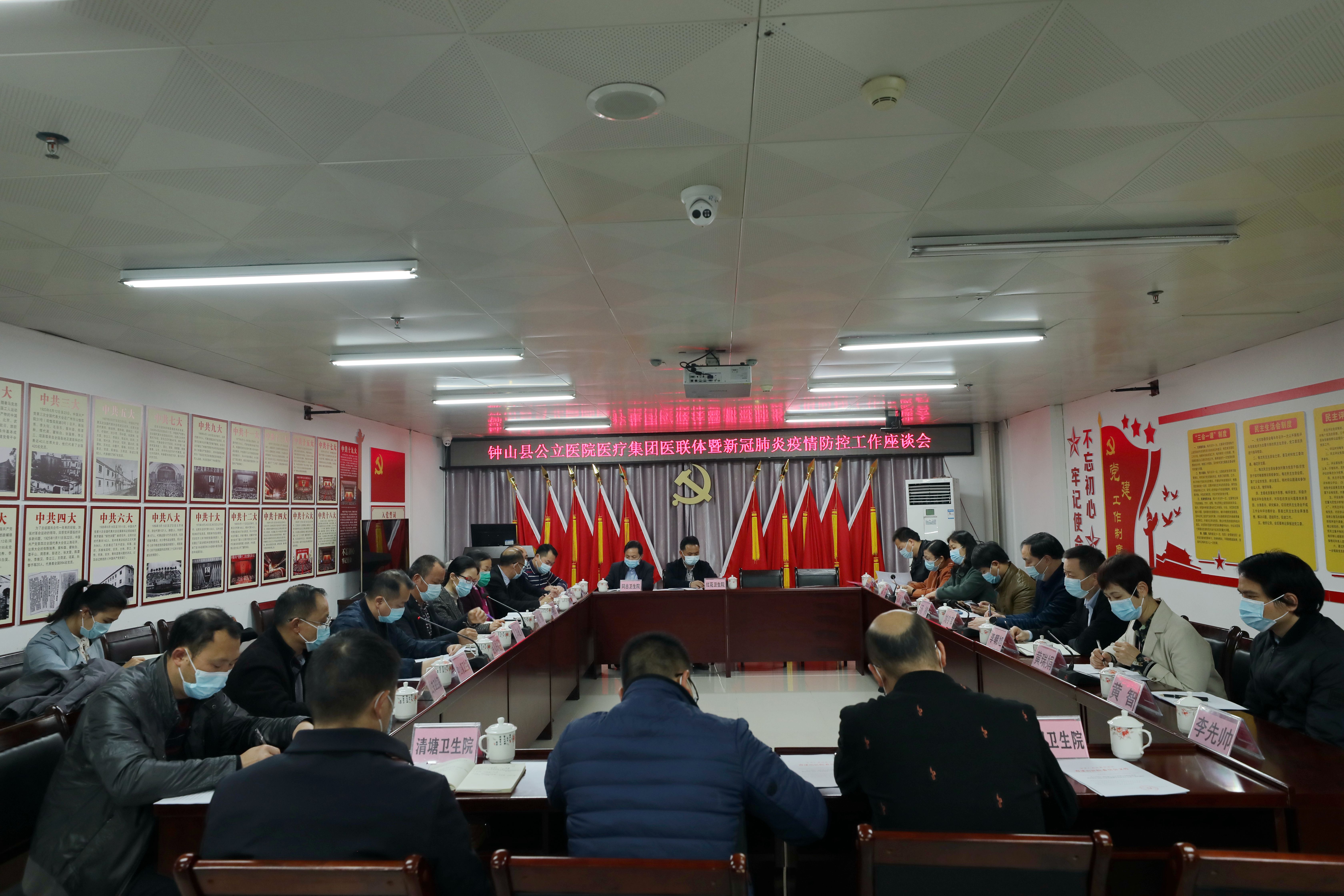 钟山县公立医院医疗集团执行院长姚臻组织召开了工作座谈会,钟山县人民医院、中医院、妇幼保健院和 12 个乡镇卫生院等医联体成员单位的负责人参加了会议。会上,各家医联体成员单位负责人畅所欲言,先后汇报了组建医联体以来工作取得的重大成效和疫情防控落实情况以及存在的问题和困难。