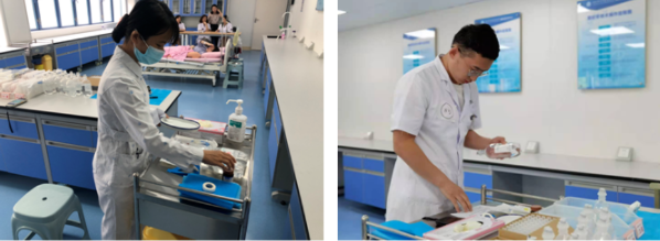 在场景二(用物准备)中,选手接到了标准医生开出的医嘱。是否能够发现医嘱中的错误,是否能够发现备物过程中的「陷阱」,是考察选手临床工作中的基础理论知识与「三查七对」制度落实情况的亮点。在谨慎的沟通及有效的「三查七对」后,选手们顺利进入场景三。