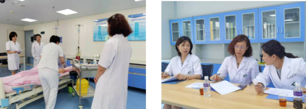 决赛现场,场景一(患者入科)中,选手们需要根据所提供的病例题干,通过与标准病人的对答收集患者的现病史、既往病史及阳性体征,并需根据收集到的信息进行相应的专科护理查体,用以评估患者的病情及可能存在的护理风险,如跌倒、压疮等。在标准病人提出的疑问时予以解答或宣教。