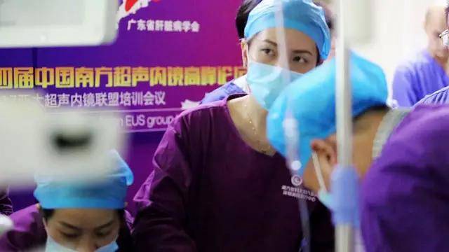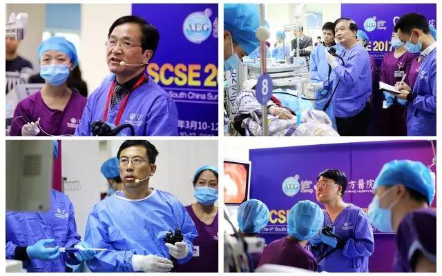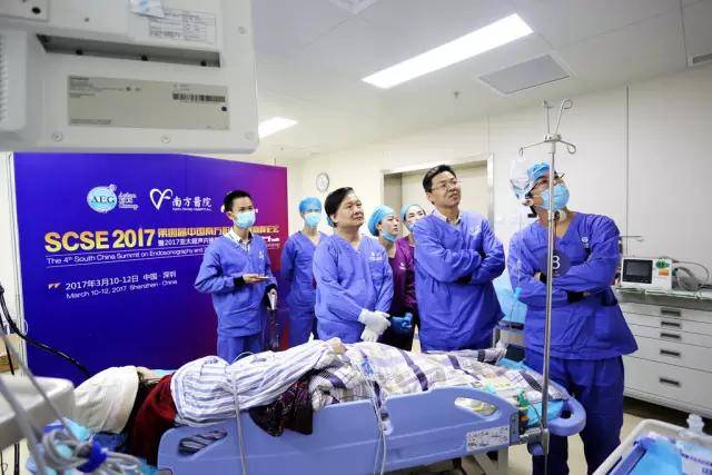 当天下午,由亚太地区国家消化界顶级专家坐镇、代表消化界学术前沿的 16 台超声内镜下微创手术连台开锣!专家们齐聚病诊疗中心(咳咳,就是龙岗区人民医院门诊楼 8 楼「南方医院深圳消化病诊疗中心之——消化内镜中心)实战演示开始,一出内镜下的消化界「武林」擂台赛精彩纷呈!!只见专家们一个个脱下西装领带、穿上手术衣、戴上耳麦、一边手持内镜游刃有余、一边与峰会现场轻松互动交流……刹那间一副网红达人的模样,且看——