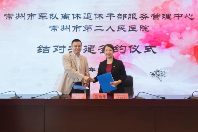 常州二院党委副书记、纪委书记李春旻与常州市军休四所党支部书记、所长沈春静签订共建协议书。