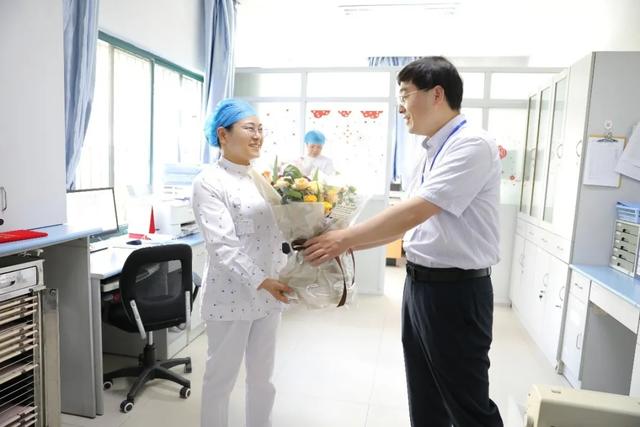 领导们走进病房,为获奖职工和集体代表送上证书和象征祝福的鲜花,祝他们节日快乐,并叮嘱他们在做好本职的同时,也要照顾好自己,健康工作,快乐生活。