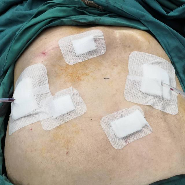 考虑到患者的高龄,医院组织了全院专家进行讨论,最终决定为其行微创腹腔镜下胆囊癌根治术,用 5 个 0.5-1.0 厘米大约小指甲盖大的切口,替代原本 20-30 厘米小臂长的大切口,将创伤减小到最低,从而帮助老人更快恢复。