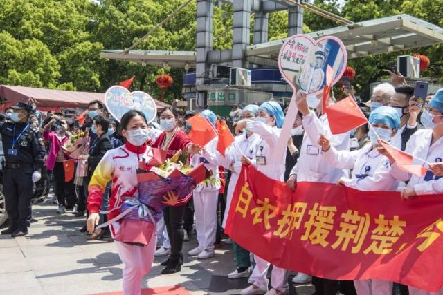 在家乡人民的翘首企盼下,4 月 15 日上午,萧山区第一人民医院医共体总院 8 名援鄂医疗队员们圆满完成援鄂医疗任务,结束集中休整后平安返回萧山。自 4 月 3 日我们迎接第一批援鄂的邵剑飞医师回家,至此,支援武汉的 9 名医共体总院医护人员已全部归队。