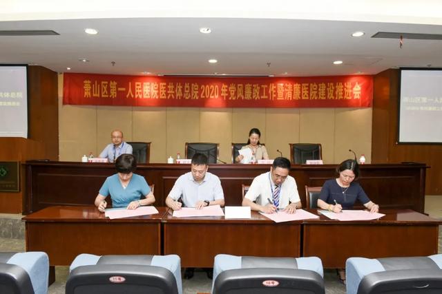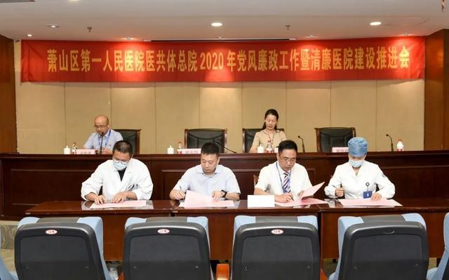 6 月 5 日下午,萧山区一医院医共体总院 2020 年党风廉政工作暨清廉医院建设推进会在区一医院 15 楼大会议室召开。