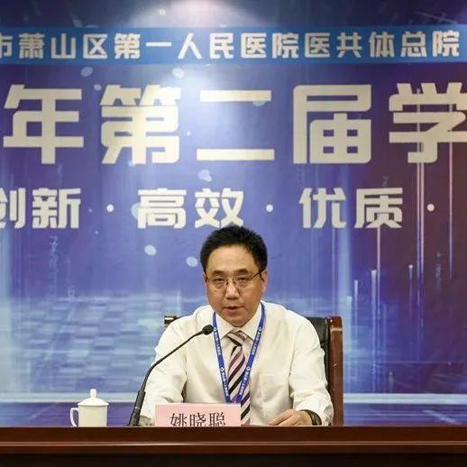 萧山区第一人民医院医共体总院党委书记姚晓聪致开幕词,他表示,实现「本地区最好的医院、现代化的学习型医院」的愿景,离不开领先医疗技术、一流医学学科、一流人才队伍和国际合作交流。学术周活动是纵深推进医学教育和管理改革的重要抓手,未来萧山区第一人民医院医共体总院要继续对标找差,学赶先进;打造优势学科集群,提高疑难重症诊治和科研攻关能力;深耕「朋友圈」,扩大「惠民网」,纵深推进医共体建设。