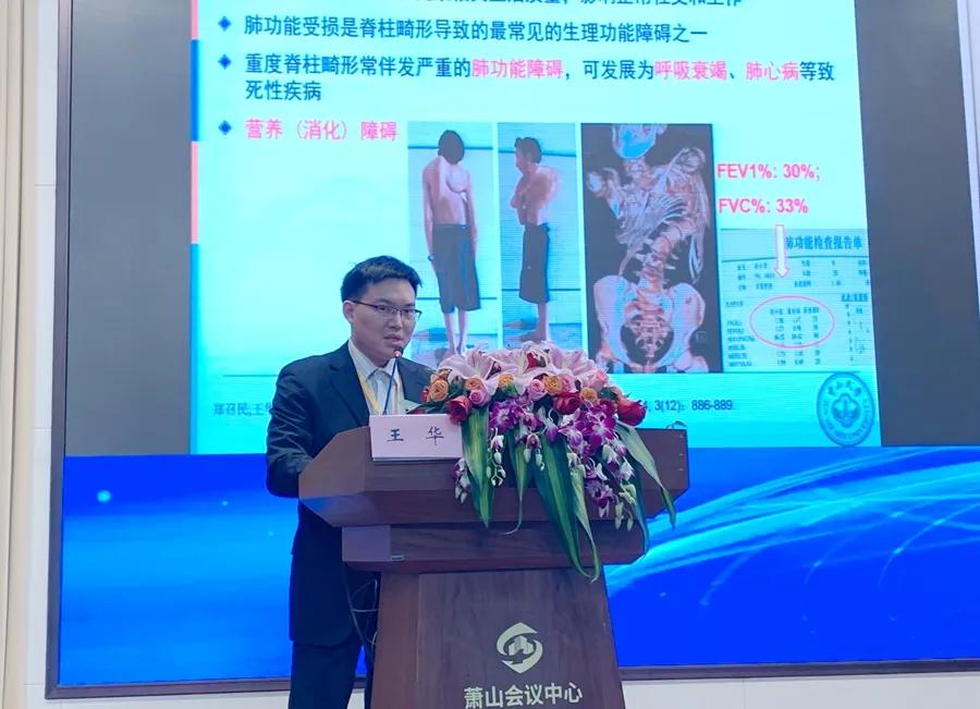 南方医科大学第三附属医院王华教授讲解了《3D 打印模型在复杂脊柱畸形手术中的应用》议题。