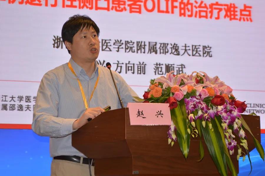 浙江大学医学院附属邵逸夫医院赵兴教授分享了《一例退行性脊柱侧凸患者 OLIF 治疗的难点和技巧》的经验。
