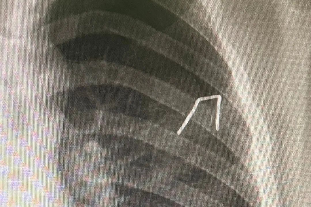术中发现,刺入达达体内的是一颗 U 型针,且已经把达达的肺扎了一个 0.3 cm 的小口。好在手术及时,一个小时后,达达脱离了危险,转入病房进一步治疗。「达达还是非常幸运的,」主刀的胸外科、心脏血管外科主任朱江说,「如果射进的是直针,形成穿透伤,情况会更加凶险。」