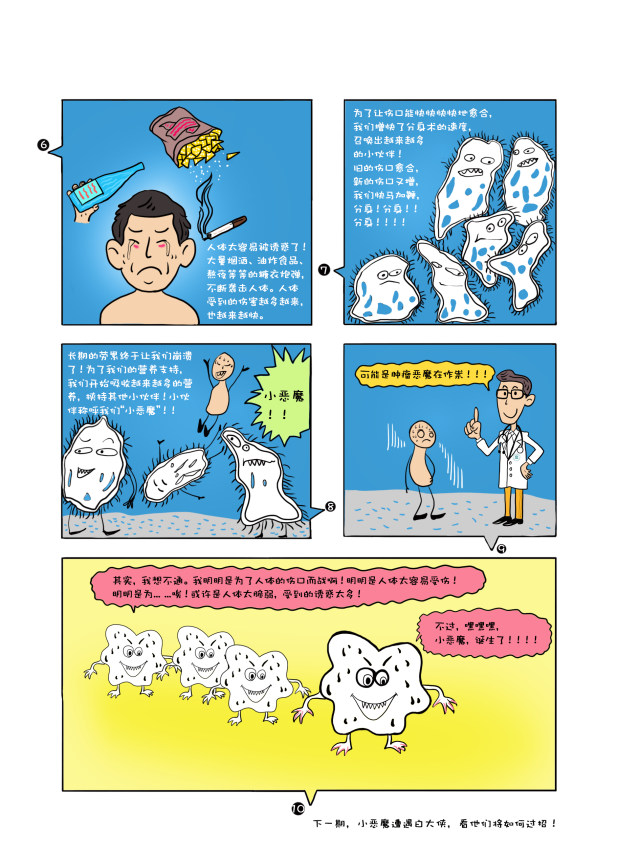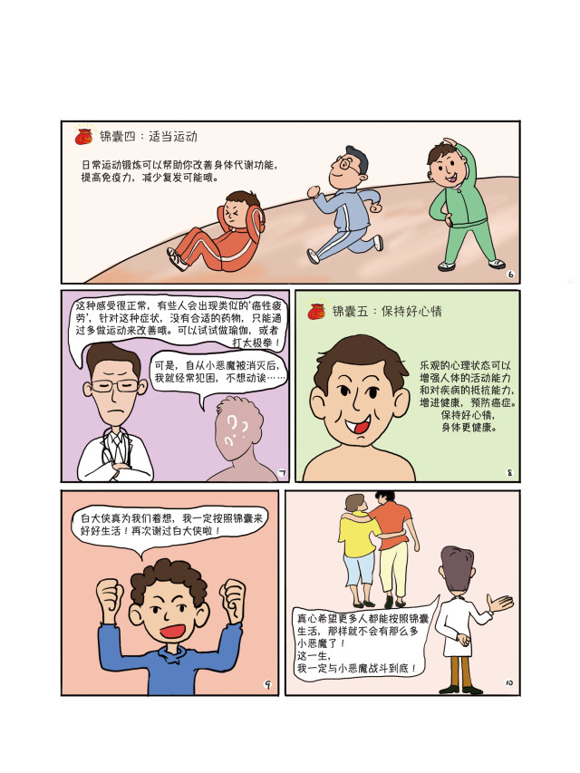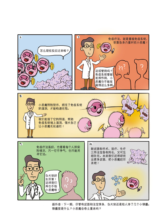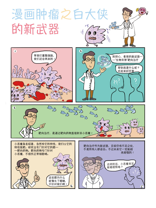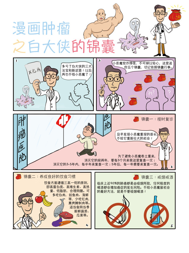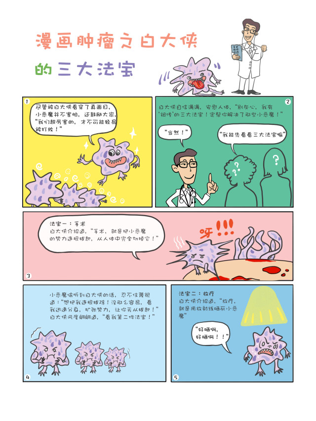2019年4月15—21日是第25个“全国肿瘤防治宣传周”。今年的主题是“科学抗癌 预防先行”。为此,杭州市肿瘤医院专门请人创作了一套漫画,共分《小恶魔养成记》、《白大侠的招数》、《白大侠的三大法宝》、《白大侠的新武器》及《白大侠的锦囊》等5集,将肿瘤的由来、治疗、预防等科普知识,通过卡通画面与通俗的语言展现给大众。
