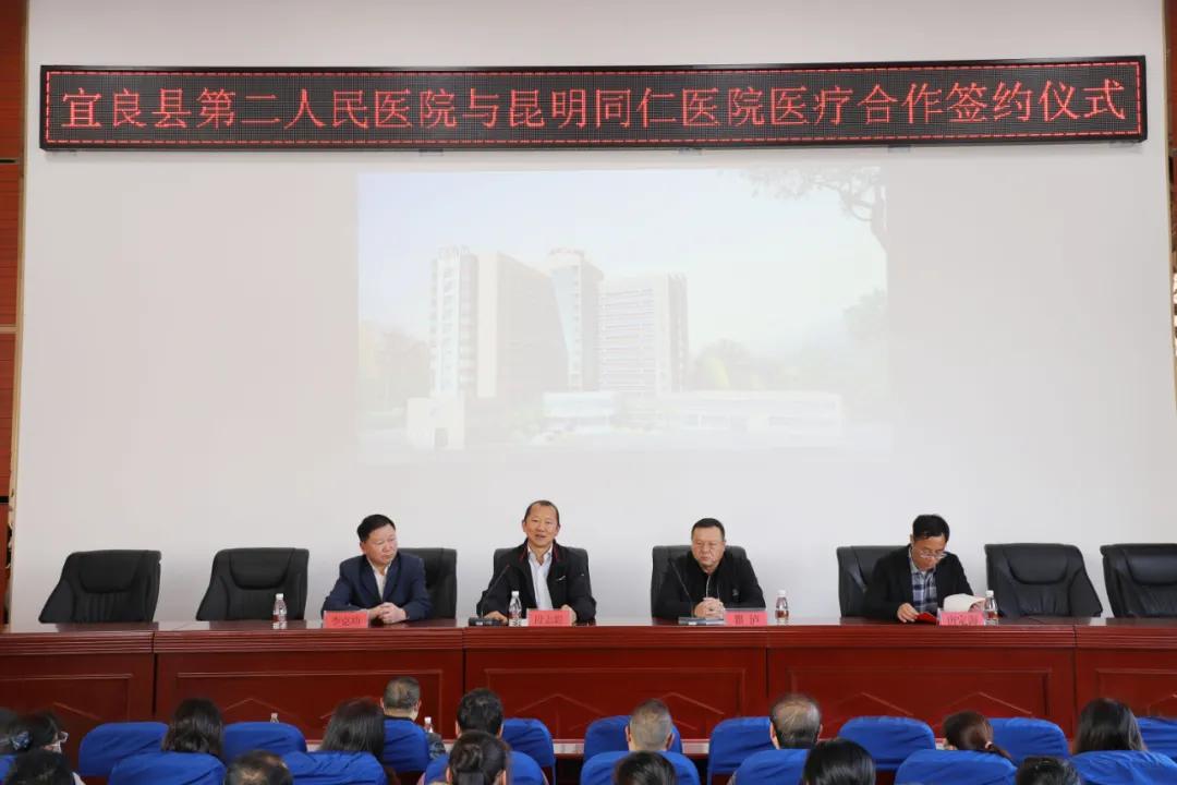 11 月 12 日,昆明同仁医院与宜良县第二人民医院正式达成医联体合作,昆明同仁医院段志聪院长与宜良县第二人民医院瞿泸院长代表双方医院现场签署了医联体建设合作协议,并进行李克功专家工作站揭牌仪式。