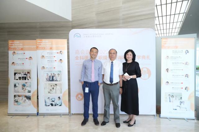 上海市卫生健康委员会科教处处长张勘教授、世界家庭医生组织(WONCA)主席李国栋教授、嘉会医疗首席执行官葛丰、嘉会医疗首席医务官兼上海嘉会国际医院医疗院长项乃强、复旦大学附属中山医院全科医学科主任祝墡珠教授、复旦大学附属华山医院国际医疗中心卢燕雯教授和董蘅教授、嘉会全科历届医生全职提升培训项目学员及医院相关科室医护代表出席了开学典礼。嘉会全科主任邱玲医生主持了本次开学典礼。