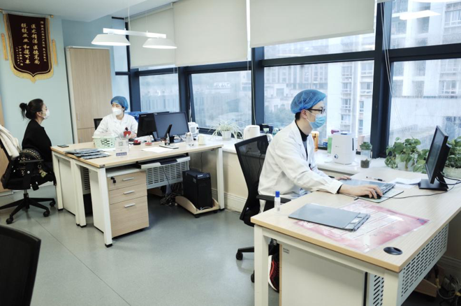 医院同步开展疫情宣传工作,加强宣教和舆论引导,通过线上防控科普,线下疫情宣教和医护人员咨询服务,确保培训工作全面落实、防护意识深入人心;医院门诊大厅、住院部等所有场所每天消毒物表和地面,三氧消毒机进行空气消毒,定时通风;客户就诊前 100% 进行卫生消毒并发放口罩。