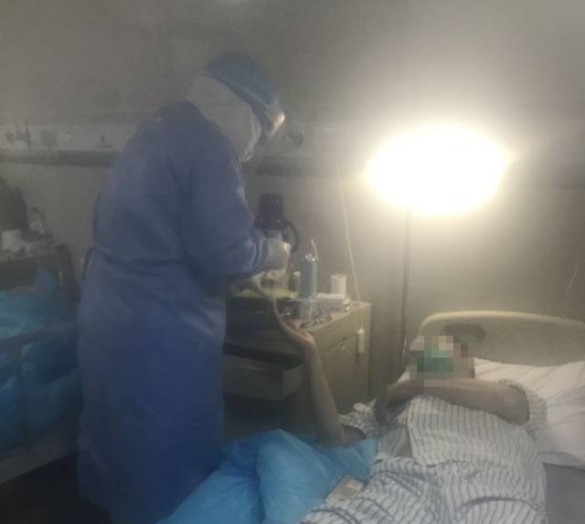 到达医院后,开始换上防护服,进入病房前有 4 道门,每道门进去都要敲门,以保证不会空气对流,污染清洁区。进入病房后最先进行早交班,由责任组长进行分配责任人及所管患者。穿着防护服密不透风,全身裹着,视野很不好,全程不能出病房,吃喝排泄都不能。今天主要的工作是为患者输液、给氧、采血、测量生命体征、换尿布等,每组进入的人员都有一位在缓冲间的护士,进行医嘱物资等传递,输液的,患者的餐食,垃圾的运送等都有专门的通道。一切都在逐步适应中,时刻提醒着自己防护措施一定一定要做好。