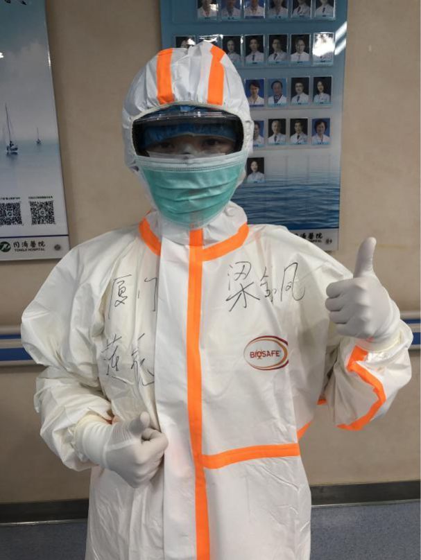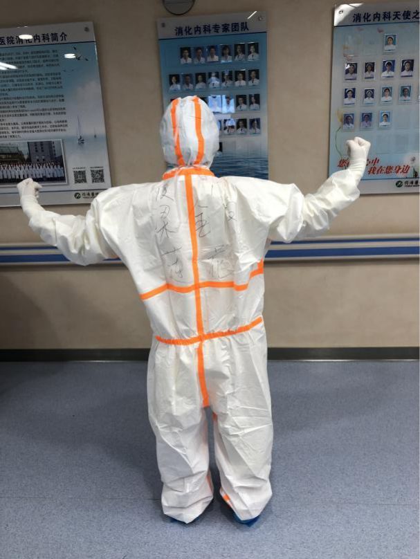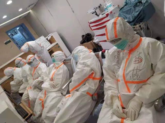 上班期间几乎每 2-3 分钟就有一个呼叫铃……2 个小时后我的呼吸更加困难了,只能张口呼吸并且开始出现头晕,恶心,感觉头快嘞炸了,整个护目镜也布满雾气根本无法看清任何东西……一轮班下来感觉脚跟腰都不是自己的了……脱完隔离衣,终于彻底解放的我们刚回到更衣室时就遇到了中山医院的陈兰老师,她关心地问我们是否有所不适,还很耐心的教导我们,感觉就跟家人一样,非常感恩能够拥有这样有爱的团队。