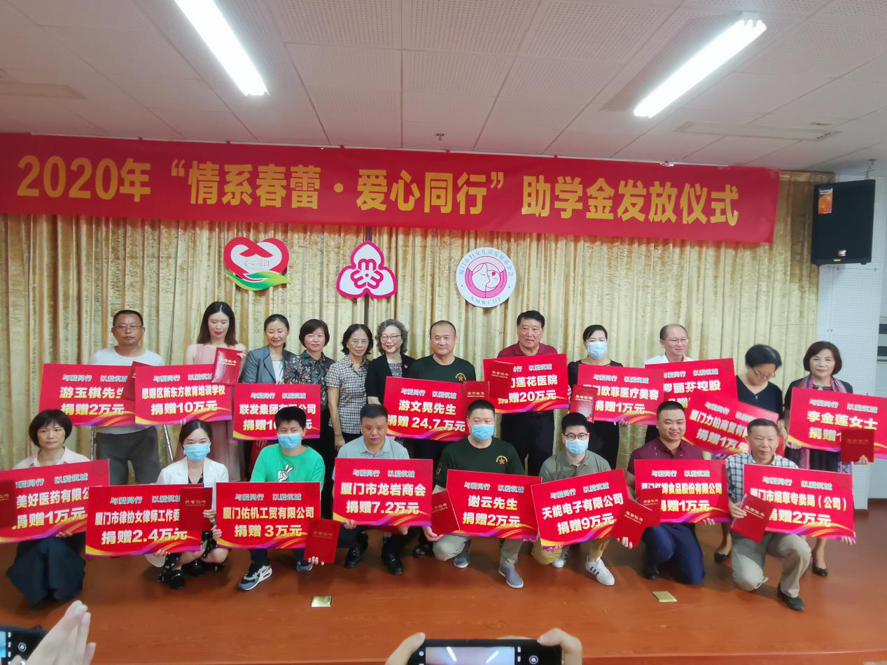 9 月 10 日上午,为推进精准扶贫工作,厦门市妇联、厦门市妇女儿童发展基金会举办 2020 年「情系春蕾·爱心同行」助学金发放仪式。厦门莲花医院与爱同行、以爱筑城,王铁鹰总经理代表出席并代表捐赠 20 万慈善款。