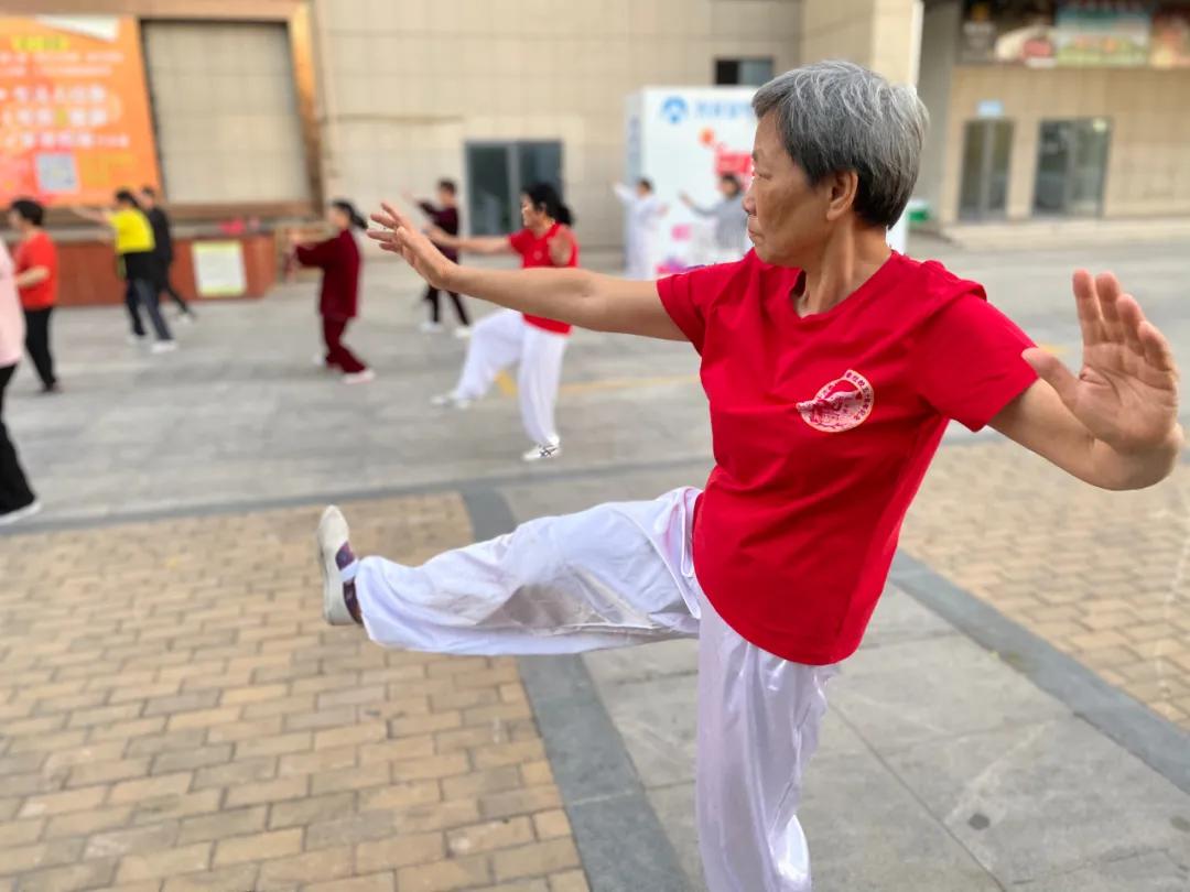 太极拳队刘老师介绍到「太极可融于生活中,步行,坐车,站立,上楼……都可进行太极修炼。它集健身、养生、文化、修身养性、民族精神于一体」。学习太极拳可以娱乐身心,陶冶情操,改善体质,令人心旷神怡,精神焕发,使自己的精神生活更加丰富多彩!对于老年人来说,身材多好不重要,快乐健身才重要。
