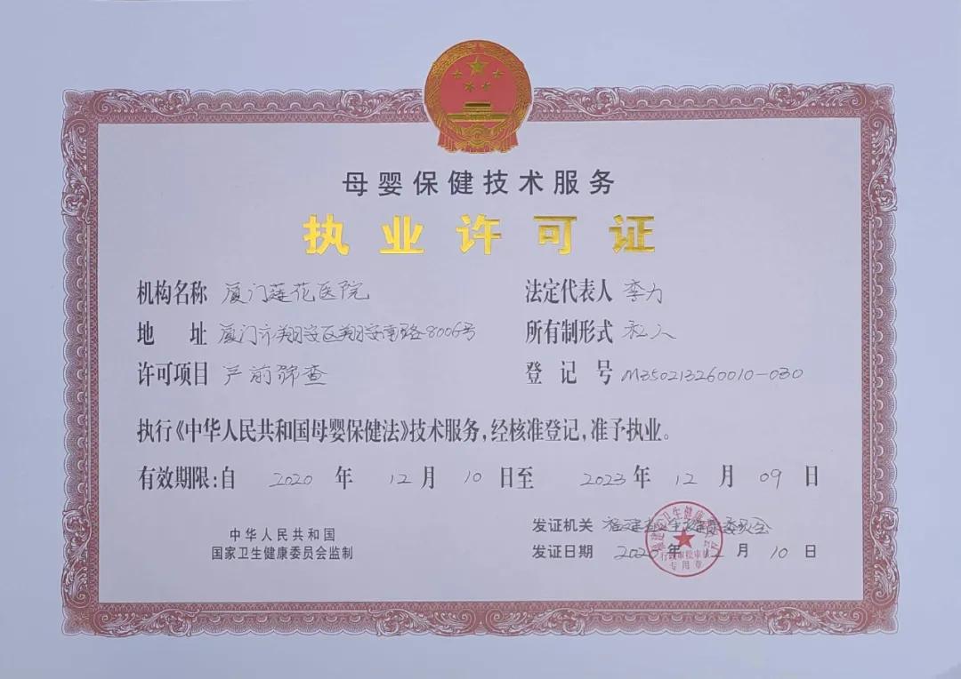 近日,厦门莲花医院获批福建省卫生健康委员会下发的产前筛查技术服务项目执业许可证,成为翔安区首家获批产前筛查技术服务机构,对于孕妈妈来说这绝对是一件喜大普奔的好消息。