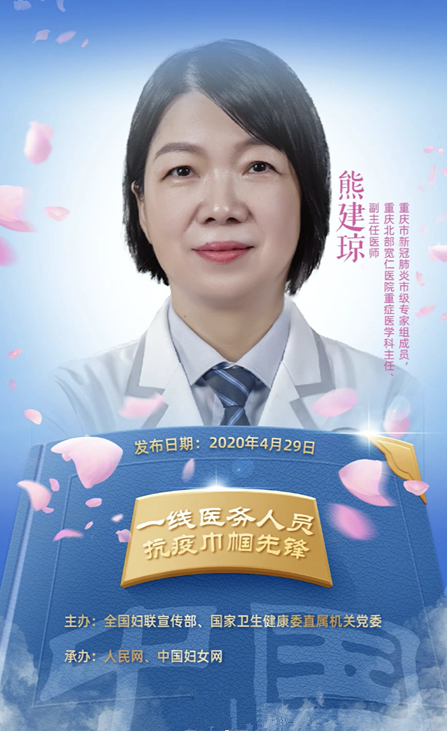 奋斗中建巾帼功业,拼搏中展女性风采。熊建琼教授是一名女医生,也是一名老兵和党员,在重症医学科(ICU)临床一线工作 20 多年,曾任第三军医大学(现陆军军医大学)西南医院重症医学科主任。在熊建琼的指导下,重庆大学附属三峡医院为 3 名危重症患者使用了 ECMO,均从危重型转为普通型,并康复出院。