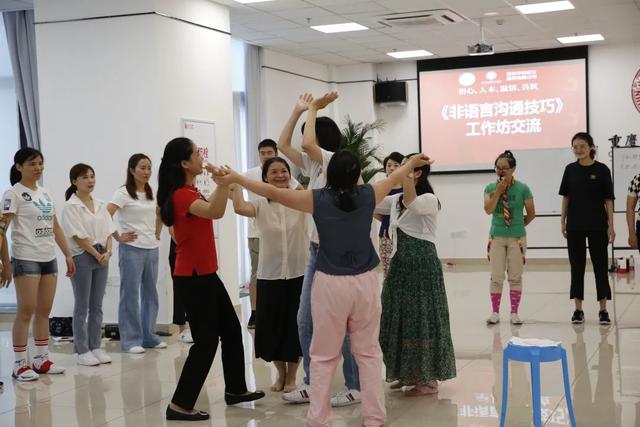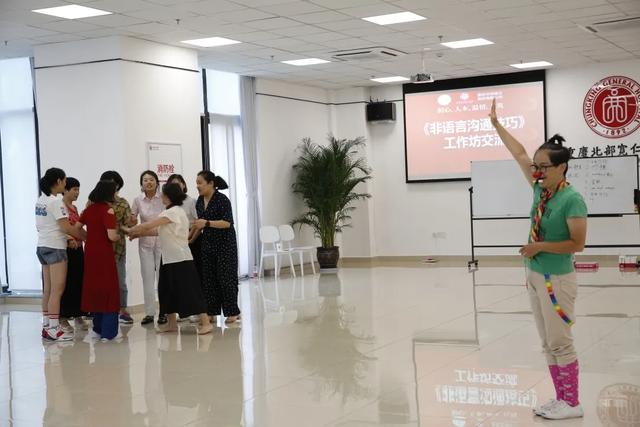 在授课环节杨有京教授打破传统讲授方式,通过设置肢体语言问候、各类蒙眼活动、肢体表演学习等丰富的互动游戏,让现场的医护人员在几乎没有语言交流的互动中,领悟非语言沟通的奥秘。