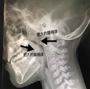 鼻咽部侧位片提示腺样体及扁桃体肥大