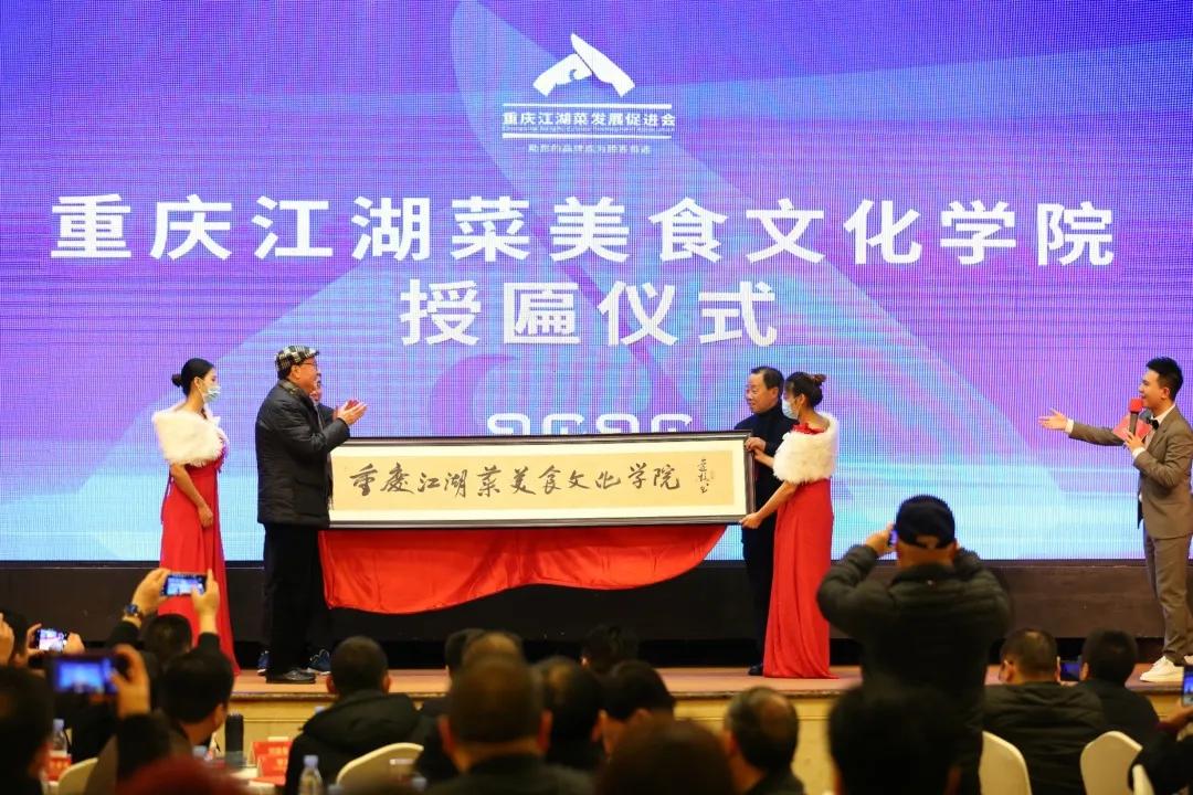 年会上,重庆市原副市长余远牧向重庆江湖菜美食文化学院授匾并讲话。重庆市社会组织管理局、重庆市市场监督管理局、重庆市商务委员会等领导分别发表讲话。在各位领导及嘉宾的见证下,重庆江湖菜发展促进会还与重庆北部宽仁医院签订了战略合作协议。