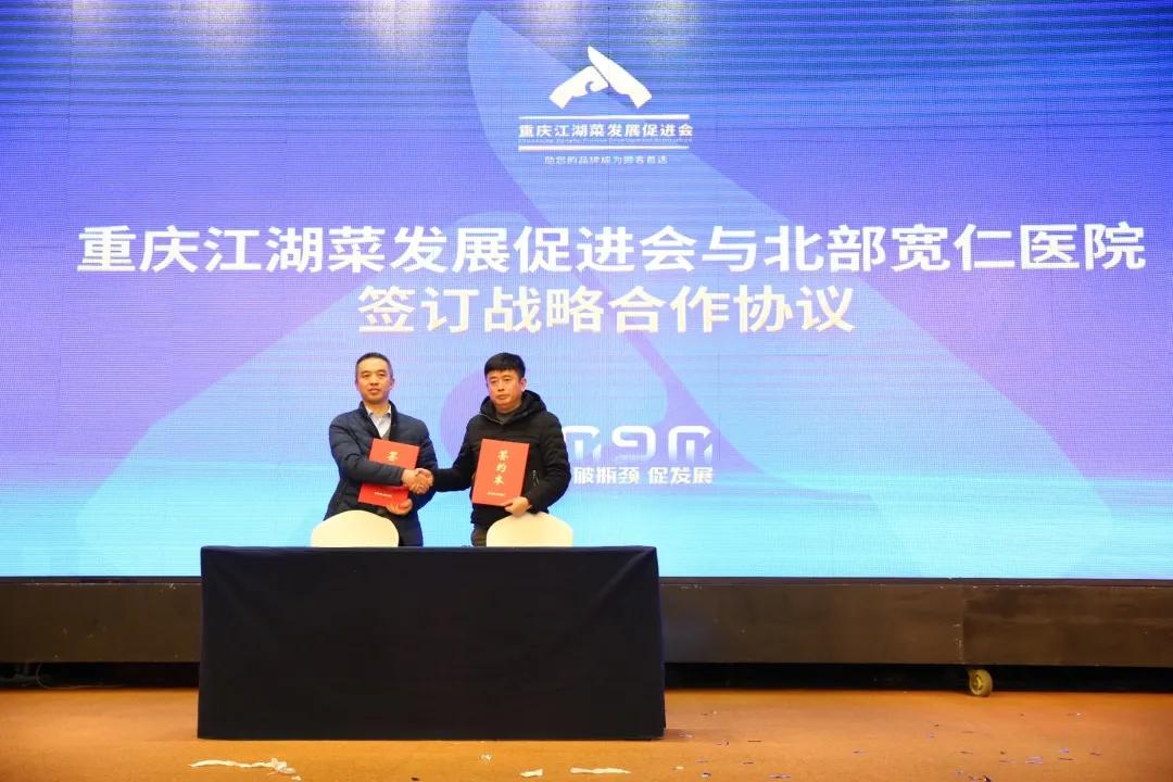 12 月 16 日下午,重庆江湖菜发展促进会 2020 年会在两江丽景酒店长江厅举行。重庆北部宽仁医院与促进会签订战略合作协议,共同为广大市民的饮食安全和身体健康保驾护航。