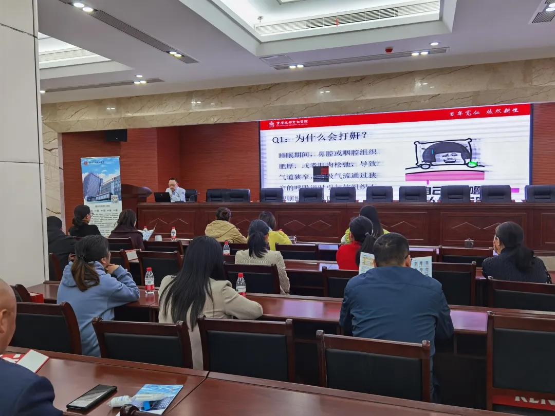 4 月 1 日下午,重庆北部宽仁医院耳鼻咽喉科李特医生和聂丽华护士长受邀来到渝北区税务局第二税务所,为现场员工展开主题讲座,科普鼾症相关知识,并在讲座结束后为员工提供健康咨询。