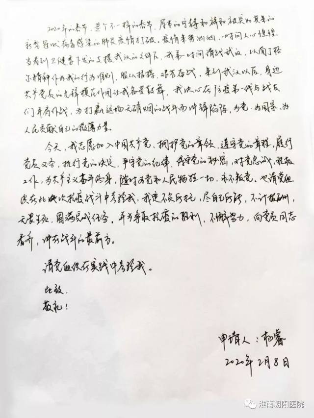 特殊时期,特殊使命,他们提笔写下了这份有着特殊意义的「火线入党申请书」。