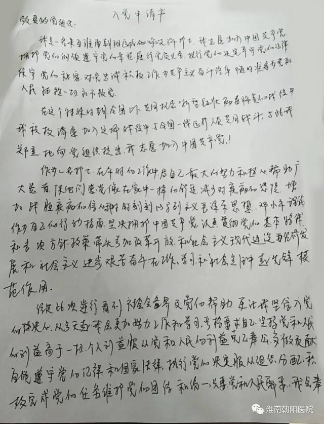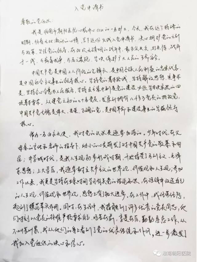 我们是临床一线普通的医务工作者,可我们更是一名中国人,在这特殊的时期,我们志愿申请加入中国共产党,用自己的绵薄之力为这场抗疫战争贡献一份力量。