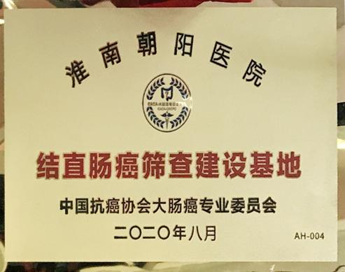 9 月 5 日结束的「中国结直肠癌早筛基地建设项目启动会」上,经中国抗癌协会大肠癌专业委员会认定,淮南朝阳医院正式成为中国结直肠癌筛查建设基地。这块「国」字头牌匾的背后,既对淮南朝阳医院医疗技术追求的肯定,又促进淮南朝阳医院消化内科今后发展的动力。