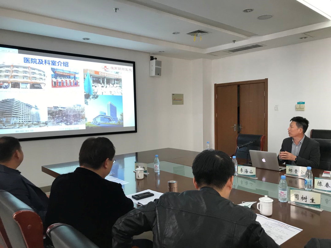 走访过程中两位教授并重点考察急诊科 120 绿色通道、抢救室、急诊病房、急危重症医学中心快速救治平台、以及消化科内镜中心、介入科等平台的建设情况,并对淮南朝阳医院的平台建设、设备配备表示肯定。