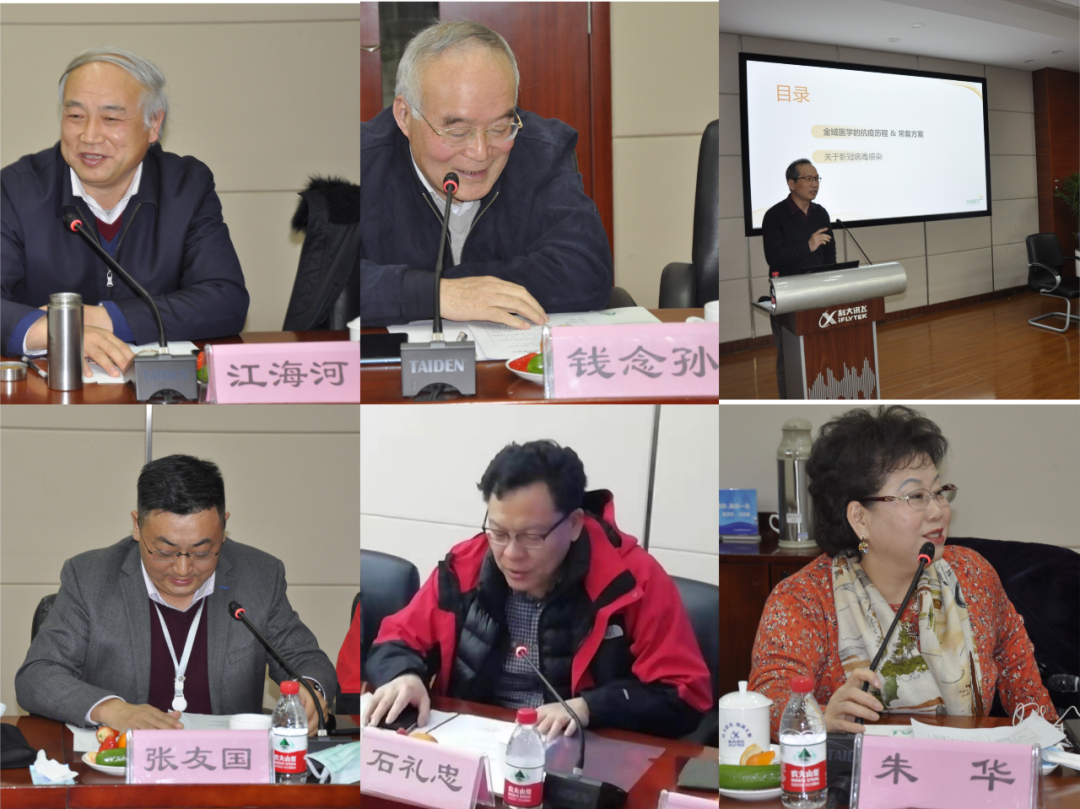 会上,促进会专家委员会专家江海河(中国科学院合肥物质研究院副院长、中国科技大学副校长、省政府参事室参事)、钱念孙(安徽省社科院研究员、省政府参事室参事)、李晓华(安徽省国家基因检测技术应用示范中心主任、博士生导师,合肥金域医学首席科学家)为大家分享了健康产业发展现状及发展前景和新冠肺炎疫情防控知识,副会长们也做了交流发言。