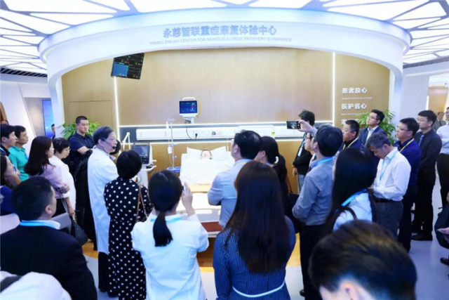 作为此次生态品牌体验中心的主要展示对象之一,永慈不仅以展陈方式向嘉宾全面展示「医患合一」下的实践,为到访嘉宾呈现了「智联病房」、「重症康复中心」等创新成果。