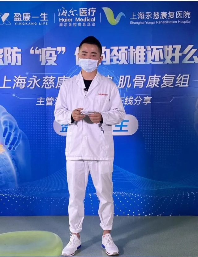 永慈医院迎来的首位「主播」是来自康复治疗中心肌骨组的康复治疗师-马晓鹏,在直播现场,他为大家详细介绍了有关颈椎的解剖构造、颈椎病形成的原因以及如何居家治疗颈椎病的康复措施。