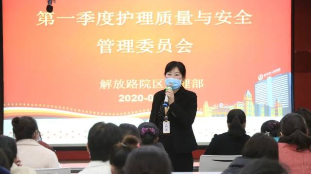 为进一步提高护理质量,加强护理安全,提高护理管理水平,4 月 10 日下午,「2020 年第一季度护理质量与安全管理委员会」工作会议在我院综合楼三楼会议室召开。会议由苏明珠副院长主持,护理部主任郑美凤、副主任韩翎燕及解放路院区各科室护士长及全体管理委员会委员约 50 人参加会议。
