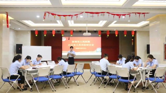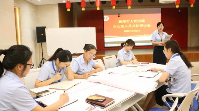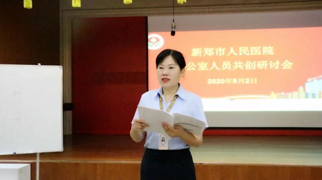 为进一步提高办公室人员发现问题、解决问题的能力,提升办公效率,2020 年 9 月 2 日,新郑市人民医院在解放路院区综合楼三楼会议室成功召开办公室人员共创研讨会,会议由新郑市人民医院行政副院长苏明珠主持。