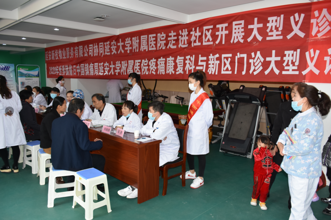 10 月 11 日是「世界疼痛日•中国疼痛周」,当日我院疼痛康复科与新区门诊联合延安新投物业服务有限公司在杨家岭北苑社区服务中心举行大型义诊活动,疼痛康复科医生、技师积极参与。