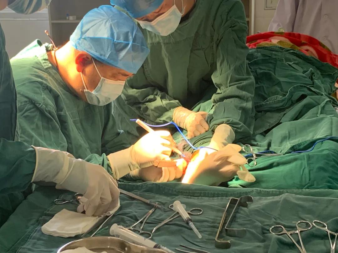 11 月 2 日,陈金武教授组织红安苏区医院外科团队进行了术前讨论,在制定好治疗方案和手术方案后,陈教授主刀,带领苏区医院外科团队共同为患者实施了「腓骨下端骨折开放复位加内固定术」,并对苏区医院医护人员进行了详细的技术指导。手术实施非常成功,不仅有效解决了患者的病痛,精湛的手术技术也让苏区医院的医护人员们有了非常棒的现场学习经历。
