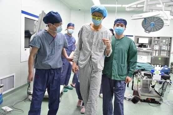 在手术全程保留患者自主呼吸不行气管插管,患者没有任何不适,生命体征平稳。在手术快结束时,需要患者咳嗽配合肺复张的关键步骤,王强主任请患者配合咳嗽,患者立即配合,在胸腔镜下可以清晰看到塌陷的肺成功复张。术毕患者立即可以站起并步行走出了手术室,返回病房。手术后 1 小时,患者在病房可以自由活动和进食。相较于传统印象中的全身麻醉,患者及家属对术毕可以清醒走出手术室感到震惊。
