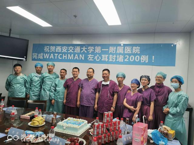 时至今日,张玉顺教授率领的西安交大一附院结构性心脏病团队已完成左心耳封堵术 314 例,属国内领先水平。今日,在西安交大一附院的介入手术室内,举行了 WATCHMAN 左心耳封堵 200 例的庆典。